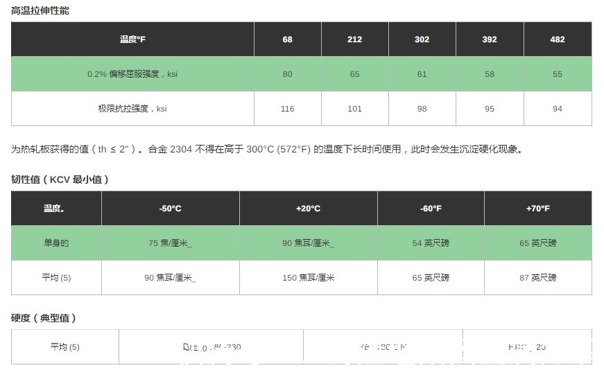 2507 结合了高拉伸和冲击强度以及低热膨胀系数和高导热性。这些特性适用于许多结构和机械部件。2507 板材的低温、环境温度和高温机械性能如下所示。显示的所有测试数据均针对处于退火和淬火状态的样品。